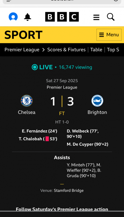 CJGJ Posted October 17, 2020 Posted October 17, 2020 Chelsea lose late goal and 3-3 with Southampton who almost scored a 4th in injury time