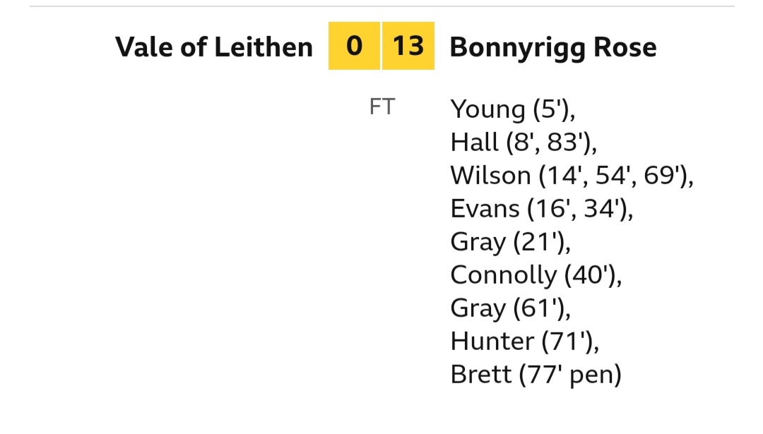 Fxxx the SPFL Posted October 6, 2021 Posted October 6, 2021 Vale of Leithen 0-7 Bonnyrigg Rose that was half time now 0-11 after 70 minutes end of the road for them