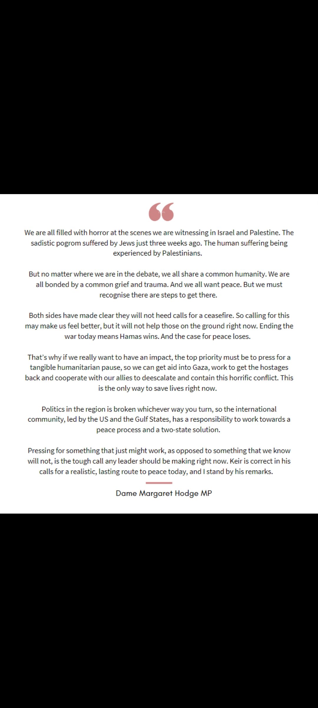 Victorian Posted October 31, 2023 Posted October 31, 2023 Perfectly positioned stance. Focus on the right to self defence and on humanitarian aid. With plenty of scope to evolve into a ceasefire as the situation develops.