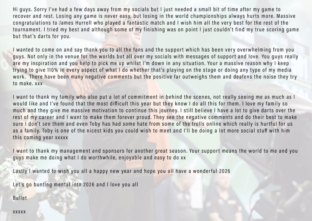 Day@theraces Posted February 17, 2024 Posted February 17, 2024 On 15/02/2024 at 22:41, Jackhmfc1348 said: yes can’t think of anyone right now who is coming through. Hopefully one soon as wright still has abit left in him Someone will end up coming out of nowhere hopefully. 2 Scots Borland and Beveridge got there tour cards at Q school, so hopefully can have some runs in the floor events. Beveridge has a beautiful throw and if his head is in it can do some damage. Although Anderson just won Players championship 2 and looked pretty much unbeatable throughout. Maybe an Indian summer for him. Wright I think is finished, never took to him and although born in Bangour and representing Scotland. There's talk that he sees himself more English since his mum took him down south as a toddler.