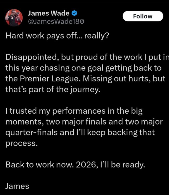 neilnunb Posted December 16, 2024 Posted December 16, 2024 Wade v Wattimena could be a tough one to call. Wattimena has been playing really well recently. Seems like quite a 'big' match for such an early round. Hopefully Menzies gets pumped. Can't be bothered with his onstage theatrics.