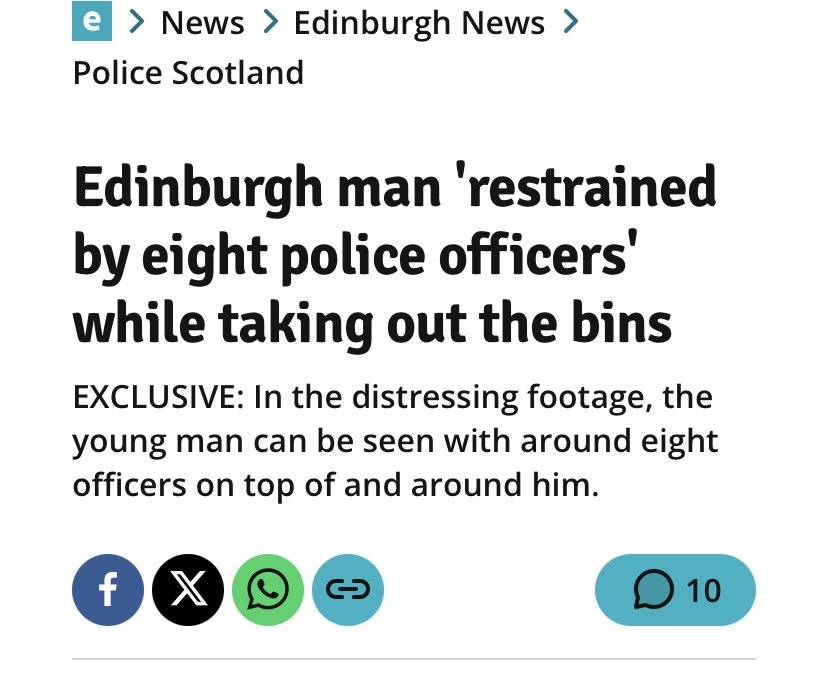 JudyJudyJudy Posted January 15 Posted January 15 Some “ welfare check “ !! 😎 I’ve had to get the police a few times to check on an old mate ( he’s in his mid 80s) and they were very good . Old mate was found almost in a coma in the living room by them , (UTI) and police basically saved his life . Few weeks later he was complaining to me that the police smashes his front door in and he had to pay for it !! I told him they / me probably saved his life . 😡 I’m hoping / assuming there’s more to that news story than in the article https://www.edinburghlive.co.uk/news/edinburgh-news/edinburgh-man-restrained-eight-police-33223125?utm_medium=Social&utm_source=Facebook&fbclid=IwZnRzaAPWA7pleHRuA2FlbQIxMQBzcnRjBmFwcF9pZAo2NjI4NTY4Mzc5AAEeaKYiXrtoQKdNU2-5tPxzIRK27Evqsyjwmzs68-kJmnn1_W7klJIfq-kI8BM_aem_drt2IrRC2_eUcu6IX7FB7g#Echobox=1768386410