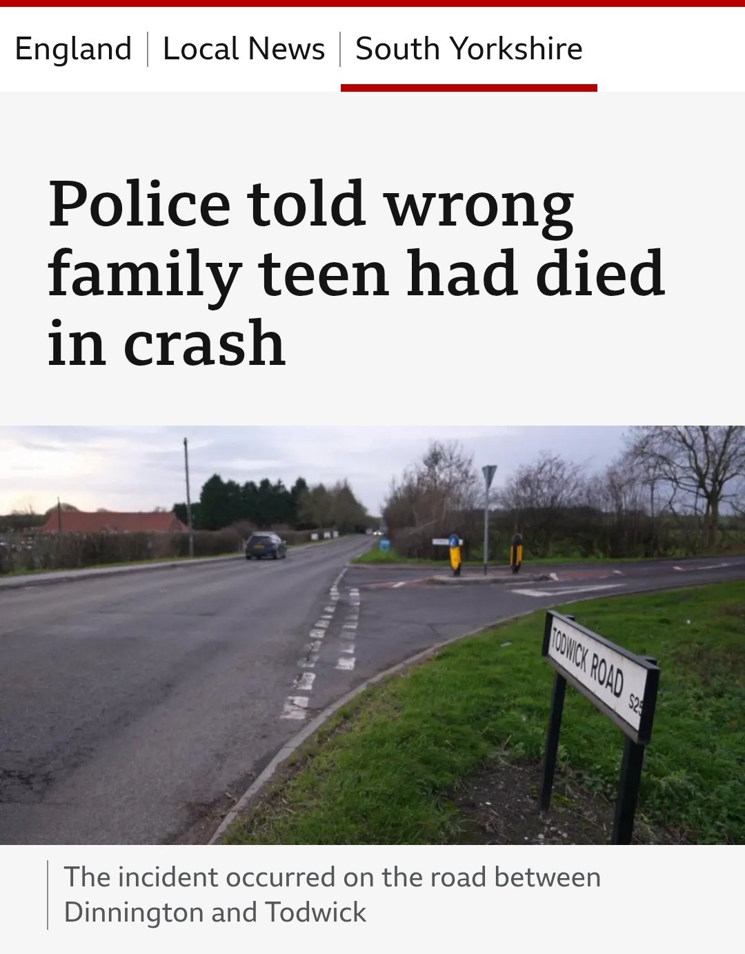 Tommy Brown Posted January 7 Posted January 7 (edited) Must be the most bizarre story just now. Seems too ridiculous to be true. Funeral for alive teen was arranged for this week. It happened 3 weeks ago. Surely families would have had to identify dead one and sit with the one in hospital. I cannot my head around it. Big news this morning and making the police very incompetent. https://www.bbc.co.uk/news/articles/cgm4yv4rlnpo Edited January 7 by Tommy Brown