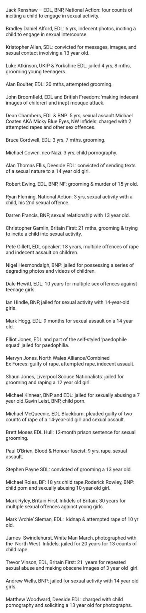 Cade Posted January 6, 2025 Posted January 6, 2025 (edited) There's a fair number of (white) Britain First and EDL boys serving very long prison terms for kiddy fiddling. Be wary of those making the loudest noise. Every accusation is a confession with these people. Mr Tate himself is out of prison now but being held under house arrest pending trial for underage sex trafficking. It's rife in society. It's got zero to do with race or religion. As with all rape, it's a power thing in which weak people attempt to assert dominance over a victim just so for one fleeting second they feel more powerful than someone else. Then it's back to being a bitter wee loser again until they find a new victim. You are far more likely to be sexually assaulted by a friend or family member than anyone else and this applies even more strongly when children are involved. Most certainly, there is an additional problem of institutions acting to protect the institution instead of protecting the victims. This applies to social care providers, the entertainment industry as a whole (don't pretend the BBC is any worse than the rest of them), the Royal Family (recently paid someone off because Andy is a sex beast), Politicians of all parties (Teresa May managed to "lose" a hefty dossier of historical abuse claims against MPs when she was Home Sec), the Armed forces, the Church (quietly moving beasts around to new parishes each time complaints were made), the Police and many other public institutions in equal measure. In the private sector, victims are gotten rid of, forced to sign NDAs and the stories are covered up by injunctions, lest the company suffer any negative press. Fixing that kind of attitude is a big ask, when it's been cover-up after cover-up for decades (or centuries). Edited January 6, 2025 by Cade