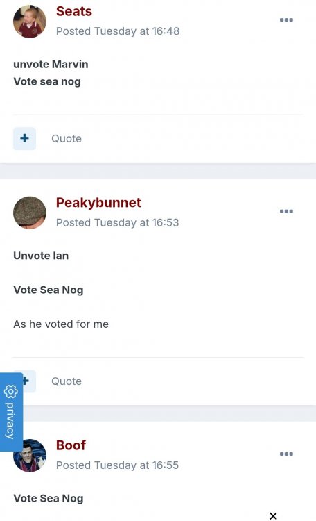 Stuart McNeill Posted January 7 Posted January 7 26 minutes ago, iantjambo said: I’m happy to dig a bit further Vote wee jambo 1 hour ago, Seats said: Let's see if we can force this issue a wee bit unvote sea nog Vote wee jambo anyone care to join me, see what the wee fella has to say for himself?? anyone want to admit to doing it then?