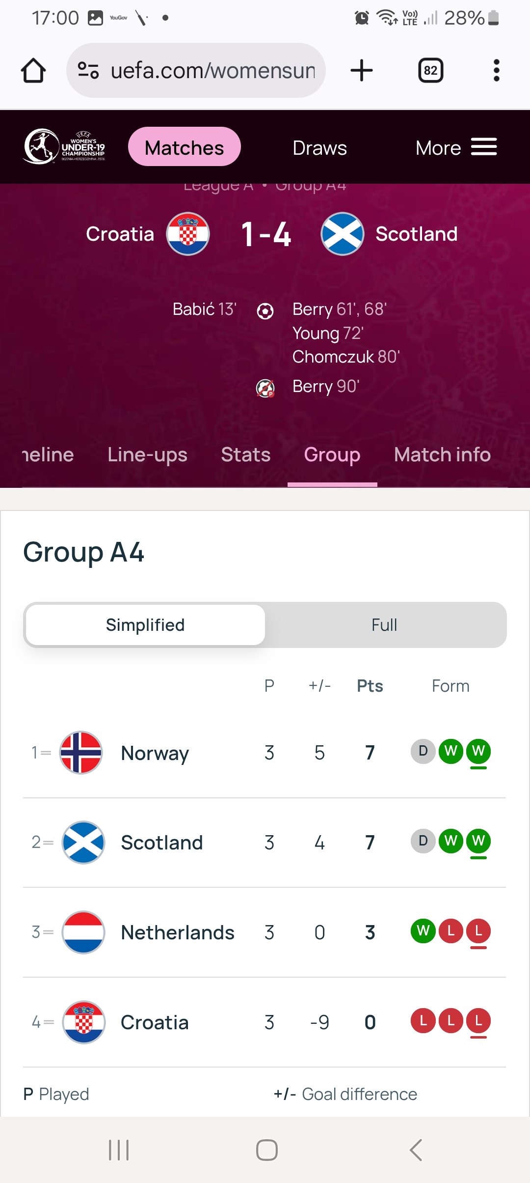 Mikey1874 Posted December 2, 2025 Posted December 2, 2025 On 01/12/2025 at 10:10, Niemi’s gloves said: Haven’t seen much coverage of this but the Scotland Women’s U 19s are going well in their current tournament, with a 1-1 draw against Norway and a late turnaround 2-1 win over the Netherlands. Seven Hearts players in the squad of 20, although four are out on loan. Four of our women started against the Netherlands - Erin and Jessica Husband plus Ashley Robertson (on loan at Montrose) and Izzy Young (on loan at Spartans). Final game of the current stage is tomorrow (Tuesday) in Kirkintilloch against Croatia. Scotland have the chance to finish at least second in the group, which gives a reasonable seeding for the next round in March. Only the group winners in the March round go on to the finals 4-1 up 83 minutes