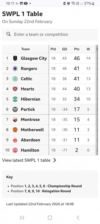 Malinga the Swinga Posted November 24, 2025 Author Posted November 24, 2025 1 hour ago, Mikey1874 said: No Hearts players in the main Scotland international squad despite being second in the league. But It's slightly misleading when it says Maria McAneny is out of under 21's. Factually true but she has been called into main squad. 4 Celtic players and 2 from Rangers although Hearts currently ahead of both. I'd have thought Eilidh Shore would be close to squad as she is a permanent stand out for Hearts but midfield seems to be hardest to get into. Don't know if Husband, 17, too young or Waldie, 25, not considered as they are no worse than Docherty, who is 33, with far more time on their side.