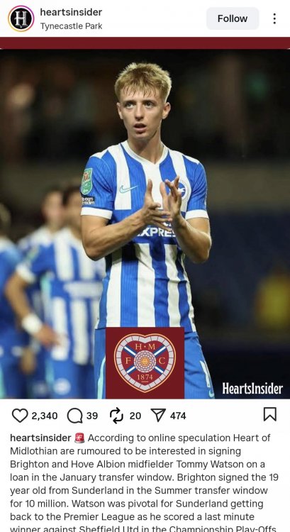 boag1874 Posted October 2 Posted October 2 42 minutes ago, Lord Beni of Gorgie said: Players that will move on will be those who are wanted by other clubs on the correct terms. Who we think is pointless Yes but there will also be players who just aren't getting a look in & might want to go elsewhere rather than kick about the Oriam knowing they're not going to be picked. Most players want to play, Kartum for example will have come here expecting to be an important player & in reality now finds himself completely out of the picture after a change in manager - it's mutually beneficial for him to move on in January, he turns 30 tomorrow so his situation is different from some of the younger guys like Kerjota & Kabore who are biding their time waiting to step up