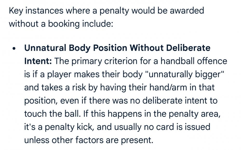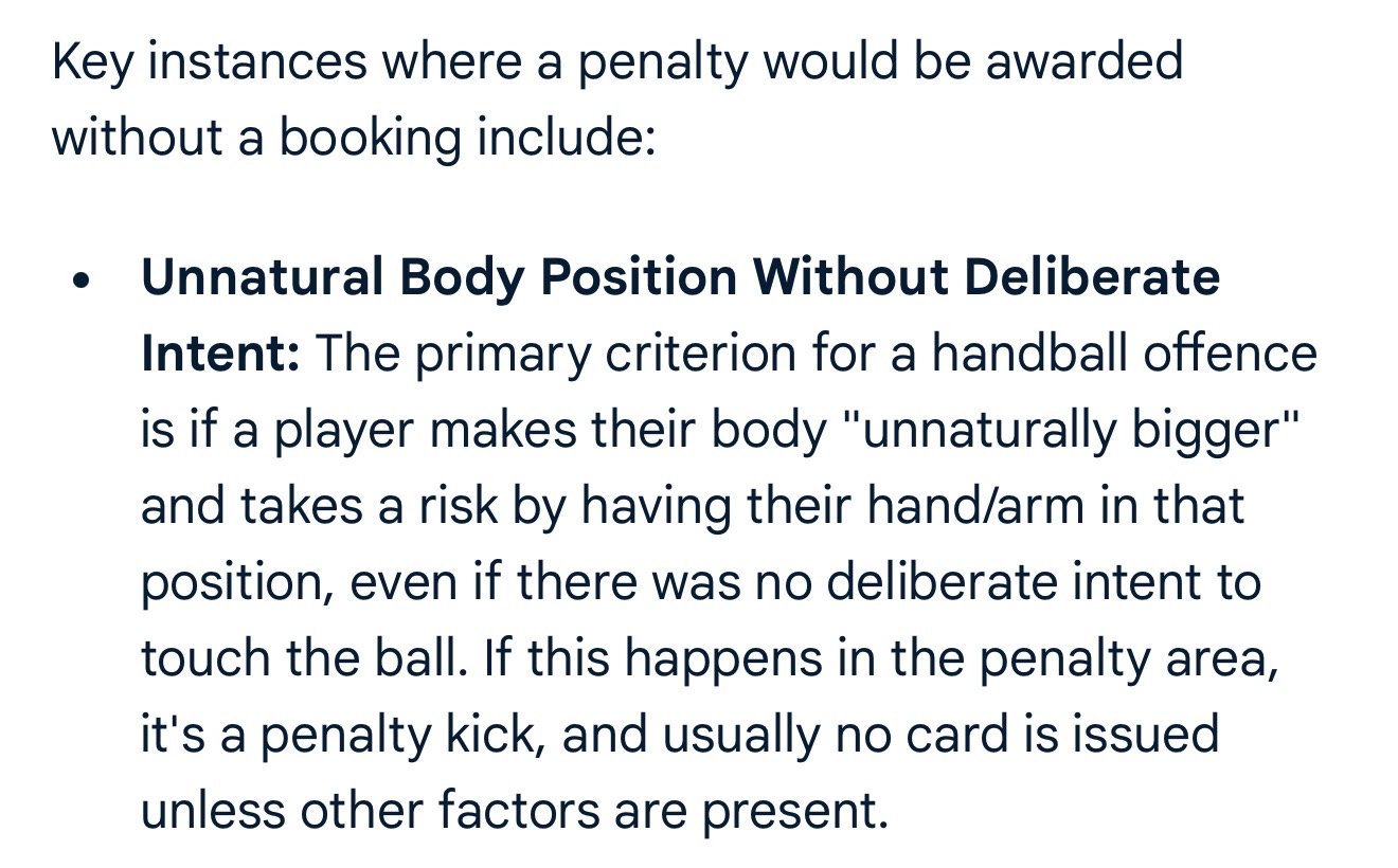 nick_3892 Posted Monday at 05:50 Posted Monday at 05:50 5 hours ago, Jambo Buckets said: Apart from the Trusty kick on Butland I thought the ref got most of the big decisions right today. Very harsh penalty, but think it might be the rules that any contact on the arm is a penalty if it's blocking a shot, even if the arm is tucked in and not in an unnatural position. I think it being a goalbound shot probably made it a penalty. Even though his arm was tucked in it still prevented the shot reaching the goal hence penalty and no card. I could be completely wrong though.