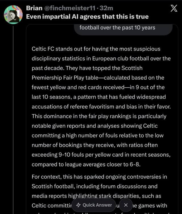 Go for it 1308 Posted January 17 Posted January 17 3 minutes ago, Masonic said: brilliant result now we can focus 100% on the league and let the old firm do midweek games and extra fixtures shame we wasted 30 min longer than required but still thats the job done. hope shanks is ok though should have played reserves today, Ffs...you must be shite in bed with your Mrs