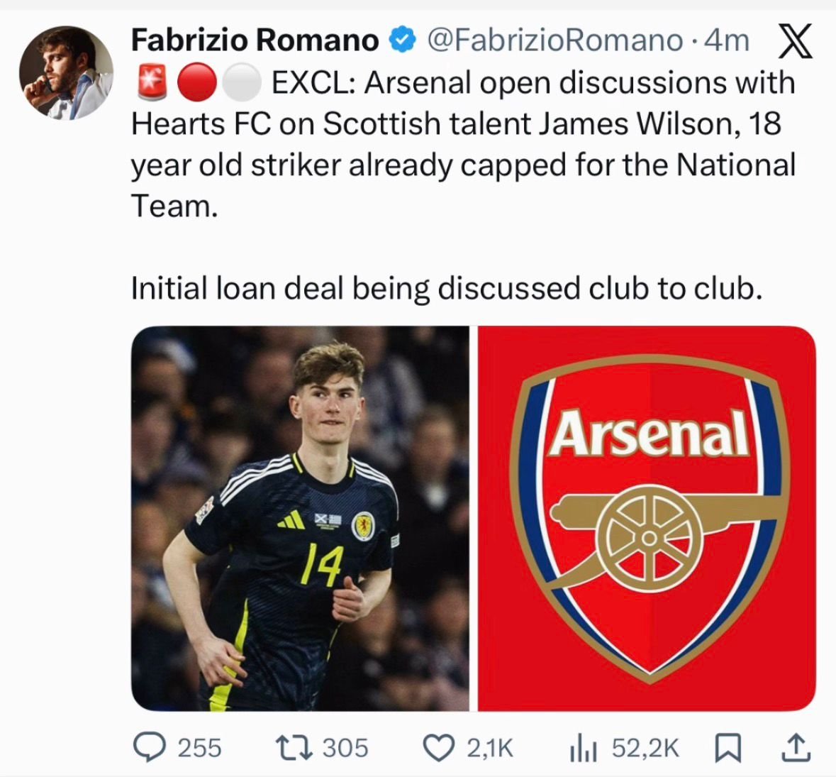 Smithian Posted February 2 Posted February 2 James Wilson playing at Hearts is better for his development than sitting at a massive club. But if he has to sit on the bench, may as well do so at Arsenal where there is a decent reserve league. I’ll believe it when I see it, but I wouldn’t be surprised. James Wilson is clearly a talented young man and did a solid job yesterday pressed into action under Critchley and Fox when relegation was a legit fear. I think any other time, he enters this year in the playing rotation. But instead Hearts when out and signed multiple older strikers who hit the ground running. If he goes, I’ll remember him as an 18 year old helping avert disaster for the club. And I’ll hope he has fond memories of Tynecastle and that the club has a positive send off, because Marc Leonard is a reminder you never know when paths can cross again.