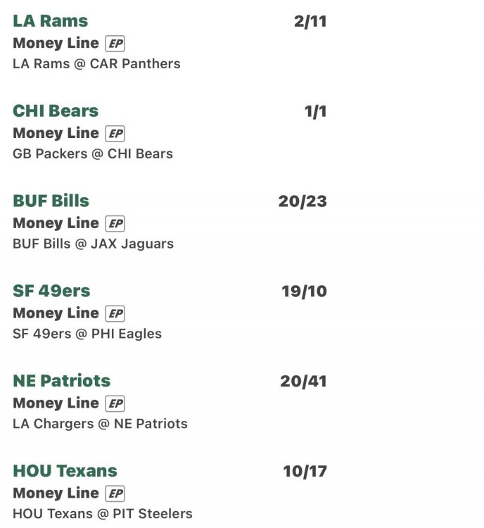 Cade Posted January 13 Posted January 13 NFC Rams (5th seed) @ Bears (2) 49ers (6) @ Seahawks (1) AFC Texans (5) @ Patriots (2) Bills (6) @ Broncos (1)